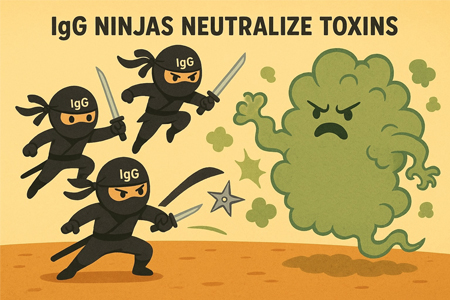 IgG can neutralize all types of threats, like viruses, bacteria and environmental toxins.